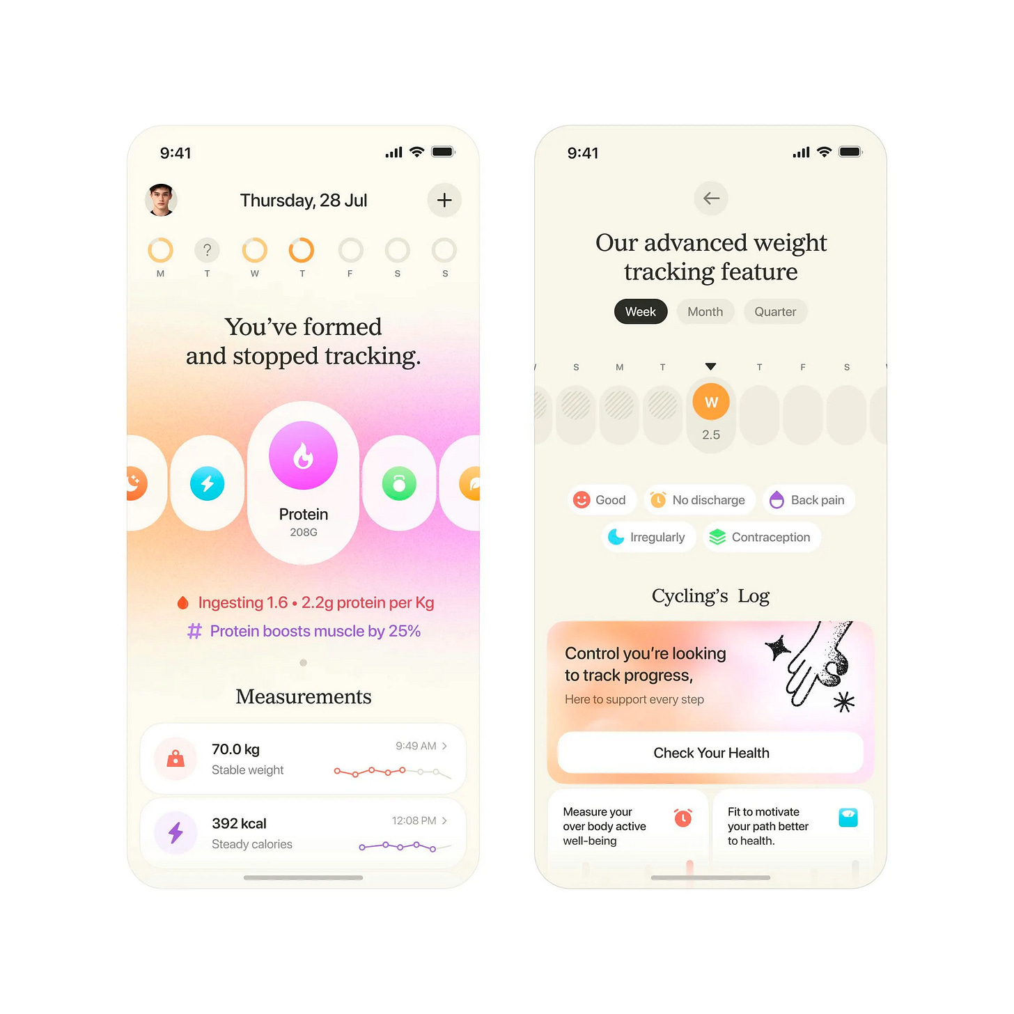 Sajon nails the challenge of making health tracking welcoming instead of clinical with this serif-and-softness approach that breaks every wellness app convention. The off-white backgrounds with bordered white cards create breathing room, while the noisy gradients on progress indicators add tactile depth without overwhelming the data. Most health apps lean into intense dark mode with sharp corners and aggressive illustrations—this goes the opposite direction with clawed effects, serif headlines, and gradients that flow from card backgrounds into the icons themselves. What really works is how this demonstrates that strong visual design comes from understanding branding and marketing, not just product design—the two disciplines intertwine. Steal this technique of challenging category conventions with softer aesthetics and elevated typography, because when everyone in your space looks one way, differentiation means having the confidence to go the opposite direction.
