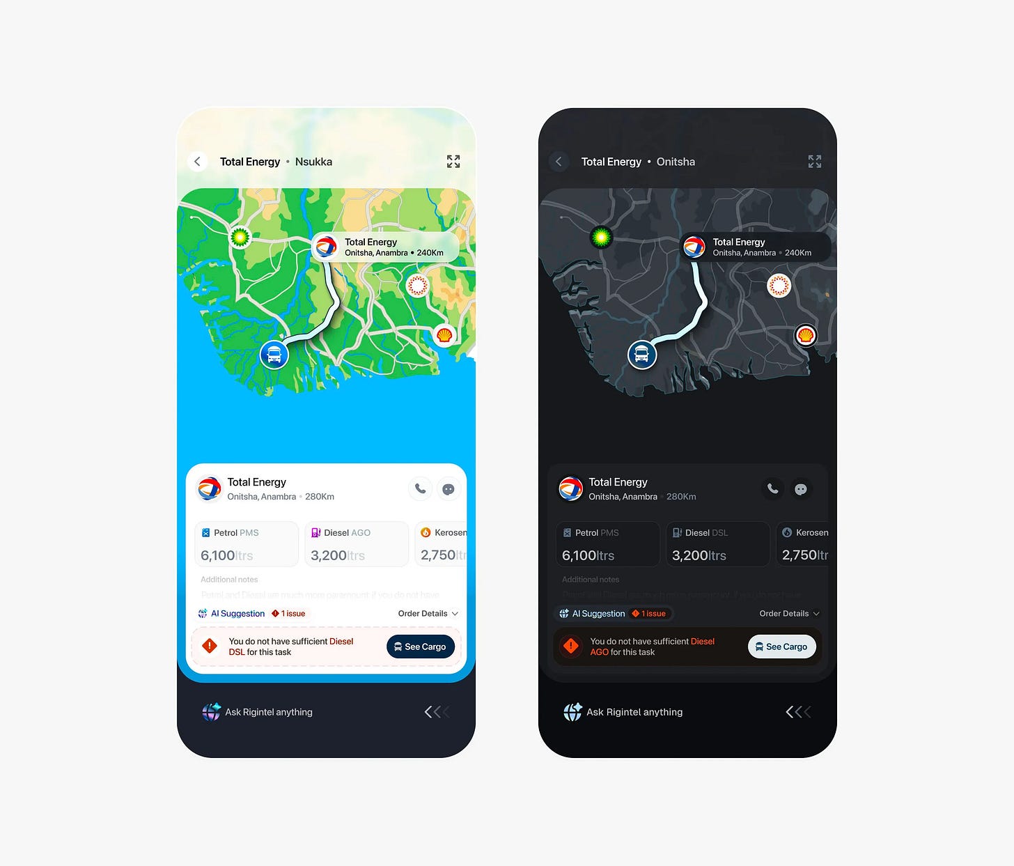 “Part of the goals for the app in general is as few screen taps as possible, so if you look beneath, you would find the AI agent listening, so aside from tapping, drivers can outright say the magic word ‘Rigintel’ and give commands right after that.